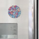 Un design artistique abstrait d'un petit arbre boisé aux couleurs blues, rouges et marron.