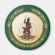Les armoiries nationales, ou le sceau, de Vanuatu, sont infusées au centre d'un faux cercle doré. Autour de cette image, est une fausse couronne de laurier d'or qui complète le design.