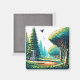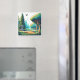 Aimant de golf de disque avec une vibes de jeu cool pixel art disque d'or parcours en bleu et vert.