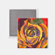 Belle peinture d'art originale de Rose d'or en rouge, orange et or. Aquarelle fine art.