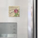Cette conception inspirée du découpage est présentée sur un arrière - plan de parchemin âgé. La tulipe violette et jaune de style botanique s'associe à la musique vintage en feuille dans un style victorien classique. Élégant aimant fait un beau cadeau pour votre lecteur autoharpe préféré ou fan de cet instrument à cordes unique.