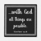 Matthieu 19:26, ...avec Dieu, tout est possible. Une typographie en écriture blanche simple et tendance sur un arrière - plan noir.