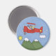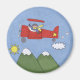 Un garçon pilote vole dans le ciel sur son avion rouge.