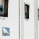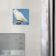 Aimant de Chouette Neige. A mon avis le plus beau de tous les rapaces, le hibou neigeux. Encadré par un ciel d'hiver bleu froid, ce magnifique oiseau prédateur armé de ses immenses talons cherche des proies à partir d'un poteau électrique.