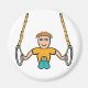 L'athlète de gymnastique étire les bras et s'accroche à deux anneaux de gymnastique. Les jambes sont levées et la pose tenue sur les anneaux de gym.