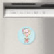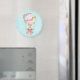 Un aimant au design adorable avec une illustration aquarelle. Une montgolfière ornée de jolies fleurs rouges et roses. Un mignon petit ours blanc est assis dans le panier. Arrière - plan bleu clair.