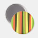 Un motif vertical rayé irrégulier en vert, orange, jaune pâle, ocre or et bois brut, chacun avec un effet de texture de papier subtil.
