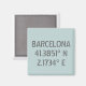 Aimant frigo avec Barcelone Espagne latitude et longitude coordonnées carte dans la police moderne gris urbain sur bleu clair arrière - plan