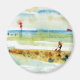 Oeuvres d'art en plein air. Gouache et encre sur papier texturé. A Sketch of a beach scene from Mundesley, Norfolk fait en octobre 2010 sur place. Un garçon jouant avec le sable, un grand porte-conteneurs qui passe.