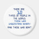 Blague binaire - en rapport avec l'ordinateur. "Il y a 10 types de personnes dans le monde, ceux qui comprennent le binaire, et ceux qui ne le comprennent pas"