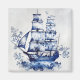 Voilier de style Delft bleu et blanc dans la mer avec fleurs bleues et décoration des vagues pour tous ceux qui aiment la décoration inspirée du style Delft. C'est un cadeau idéal pour Noël, anniversaires, etc. et vous pouvez décorer votre maison avec ce design magnifique et unique.