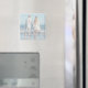 Annoncez votre date de mariage à votre famille et à vos amis d'une manière unique avec ces magnets de carré Save the Date avec votre photo préférée avec une simple couverture blanche. Personnalisez avec vos noms, date mariage et emplacement dans un script manuscrit bleu
