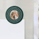 Ajoutez votre photo préférée avec une touche art déco chic avec notre aimant Bright Circle. Votre image est encerclée par une triple bordure géométrique en faux feuille d'or sur un riche arrière - plan de chasseur vert.