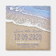 Ce bel aimant à dater a une scène de plage avec du sable et du gazon. C'est la façon idéale d'envoyer vos détails de mariage sur le thème de la plage à votre famille et à vos amis.