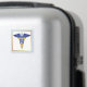 Cette canette de soins infirmiers présente des serpents dorés jumelés autour d'un personnel bleu clair avec des ailes bleues plus profonds et une grande lettre N.