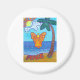 Le California Beach Angel Painting montre un ange jaune-orange qui survole l'océan avec les mots "joie" sur un nuage qui voit le soleil à travers. Les mots "paix" apparaissent ci-dessous sur le sable à côté. Un joyeux palmier pousse sur la plage. Pour en savoir plus sur ce tableau, visitez www.donnabellasangels.org/art/angel/california-beach-angel.html