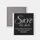 Calligraphie Enregistrer l'aimant Date en noir et blanc avec un design de typographie sophistiqué. Cet élégant et chic enregistrer l'aimant de date est facile à customiser avec vos détails de mariage. Pour plus d'options de personnalisation, cliquez sur le bouton Customiser.