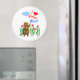 Aimant avec ma conception d'un personnage castor tenant une pancarte qui dit "Je coeur le Québec".