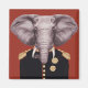Ce dessin présente le portrait d'un éléphant vêtu d'un uniforme militaire.