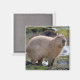 Closeup capybara (Hydrochoerus hydrochaeris) les pattes dans l'eau au bord d'un étang et vue du profil