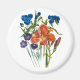 Illustration botanique vintage de tradescantia et hémérocalle en bleu, violet et orange