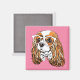 Ce design présente le portrait d'un roi Cavalier Charles Espagnol portant des lunettes et une cravate arc sur un arrière - plan rose.