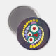 Une série de cercles multicolores tourbillonnent en harmonie dans cette oeuvre abstraite de Richard H. Fay.