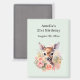 Aimant de save the date de fête avec une belle illustration représentant un cerf mignon. Entouré de roses et de fleurs roses.