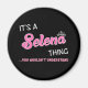 C'est une chose Selena que vous ne comprendriez pas - la typographie de prénom en lettres de caractères mélangées blanc et rose. Le nom rose en police décorative est encadré en blanc et surmonté d'une couronne blanche.