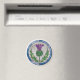 Un design qui présente l'emblème du chardon écossais comme un vitrail.
