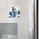 Un charmant bonhomme de neige lève un grand clocher à l'extérieur par une journée enneigée. Les neigeurs travaillent dur pour maintenir leur forme et cet homme ne fait pas exception. Il a l'air élégant dans sa toque et son foulard sur cet aimant.