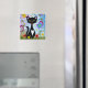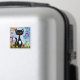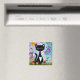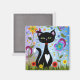 Mignonne chatte noire et blanche avec un coeur d'amour blanc sur la poitrine et des yeux vert vif assis dans une longue herbe verte. Elle est entourée de nombreuses jolies fleurs colorées. Des feuilles et de minuscules fleurs flottent autour de sa tête. L'art populaire abstrait numérique conçu par C.Katt.