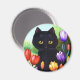 Aimant Chat noir Fleurs d'art originales Printemps Créati