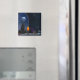 Un mignon chat noir est assis sur une table en regardant une bougie éclairée. Sur la table se trouvent également un livre, un gobelet, une bouteille, un coffre, un casquette et une boule de cristal avec un corbeau assis sur le dessus. Une pleine lune brille dans la fenêtre sur la scène.