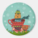 Aimant Chat Whimsical assis dans un thé Noël