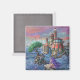 Si vous aimez les sirènes, alors ce tableau est pour vous. Le château de Sirène peint par Traci Van Wagoner présente une sirène aux cheveux violets devant et une sirène aux cheveux verts se faisant bronzer sur les îles rocheuses tandis qu'une autre sirène aux cheveux roses nage dans l'océan devant un château au ciel de soleil violet, orange et jaune derrière. Ce bel imaginaire fantaisiste fait un grand cadeau et une décoration étonnante pour votre bureau ou votre maison.
