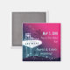 Signe glamour Las Vegas, hautes silhouettes de palmier, étoiles scintillantes et un arrière - plan couleur fuchsia + vert mer illustrée sur mesure Save the Date Invitation Magnets. (Vous pouvez trouver les essentiels et les faveurs mariages correspondants dans ce magasin, le paradis nuptial. Contactez ujean4791@gmail.com pour un travail personnalisé et/ou la coordination de la papeterie mariage.))