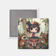 A sweet fairy tale magnet for a child. A cute little cartoon chibi fairy eating blackberries with her forest friends, a raccoon and squirrel.
