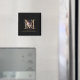 Décor moderne et simple, dans un monogramme noir et or avec floral rose vif transparent sur l'avant et l'arrière. Customisez facilement avec vos informations et votre monogramme de choix.