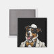Chien berger australien amusant en costume trois pièces blanc et chapeau melon.