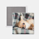 Photo d'un mignon chihuahua souriant allongé sur une couverture plaid.