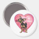 Parade animale Chihuahua romantique Chihuahua Chien Personnalisé Coeur et Amour cadeaux, cartes et accessoires présente notre amusante oeuvre d'un Chihuahua noir et bronze tenant un joli rose dans sa bouche avec des coeurs violets, rouges et roses superposés derrière numériquement peints par notre talentueux artiste pour enfants, Traci Van Wagoner. Ce doux chien en amour design est un cadeau parfait pour la Saint Valentin, son anniversaire, pour proposer le mariage d'une manière amusante et originale, ou simplement pour dire, je vous aime. Malheur !
