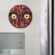 Ce design présente le visage d'une chouette, aux grands yeux jaunes, faite d'écorce d'arbre. Rustique et mignon.