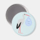 Cet aimant incroyable présente une image graphique d'une cigogne blanche mignonne avec des plumes de queue noires tenant un paquet de couvertures bleu clair. Il y a du texte bleu sur le paquet qui dit "Bébé Garçon". Ce design est parfait pour célébrer un bébé garçon.