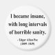 "Je suis devenu fou, avec de longs intervalles d'horrible santé mentale." - Edgar Allan Poe