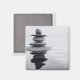 L'aimant carré présente Cicero citation gratitude avec photo en noir et blanc de pierres équilibrées réfléchissant dans l'eau. Citation complète : "La gratitude n'est pas seulement la plus grande des vertus, mais le parent de tous les autres."