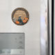 Halloween trivet thème dispose de la couronne épaisse avec corbeau, crânes et sinistre face jack o' lanternes sur arrière - plan brun et personnalisable "quelque chose de mauvais de cette façon vient" texte dans la police Ravenmore. Ajout parfait pour les barreaux à thème Halloween
