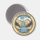 Illustration du parc d'état de Clifty Falls dans un cercle de style badge. Le parc comprend le ruisseau Clifty, le ruisseau Little Clifty et un canyon où le soleil ne brille qu'à midi.