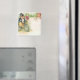 Illustration vintage adorable d'un cochon en haut d'un chapeau à vélo et portant un bouquet de fleurs à sa petite amie qui regarde par-dessus un mur et tient un joli ventilateur