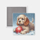 Aimant Cocker Spaniel Chiot posé sur la neige avec une ba